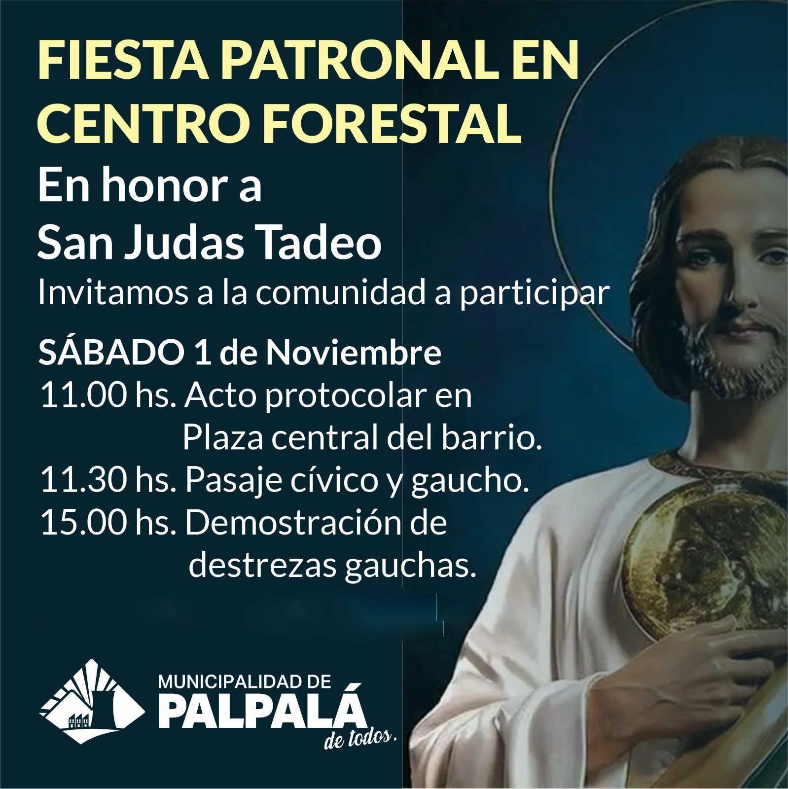 La Municipalidad de Palpalá comunica el cronograma de actividades para la festividad en honor a San Judas Tadeo, en Centro Forestal: