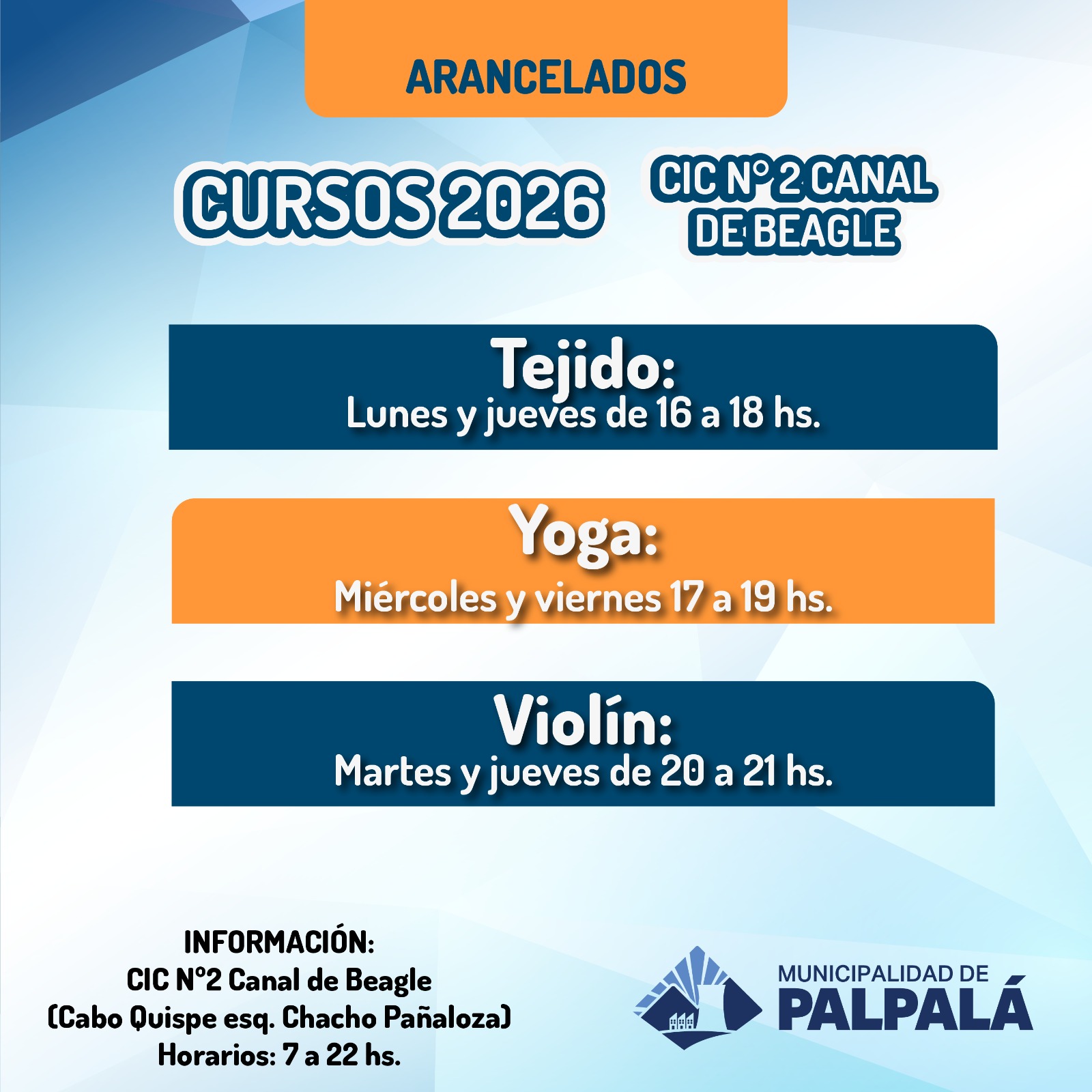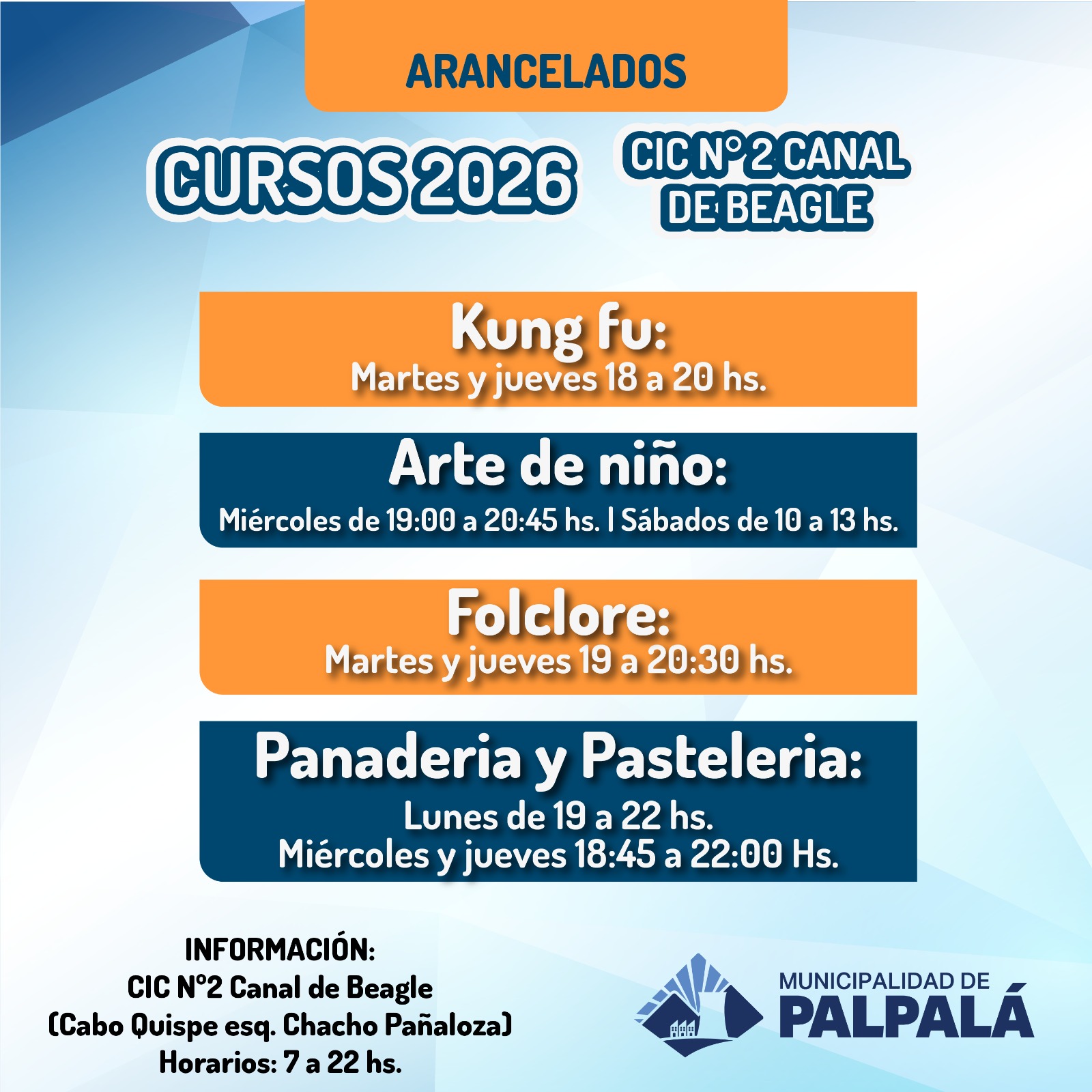 El Municipio de Palpalá, a través del Instituto Municipal de Desarrollo, impulsa una amplia oferta de talleres, cursos de capacitación y servicios en los CIC de los barrios San José y Canal de Beagle, destinados a toda la comunidad, con el objetivo de brindar herramientas para la inserción laboral, el crecimiento personal y la contención social; la gestión del intendente Rubén Eduardo Rivarola acompaña esta iniciativa que incluye propuestas recreativas, deportivas, culturales, educativas y de salud, además de apoyo escolar y acciones solidarias, invitando a los vecinos a participar: