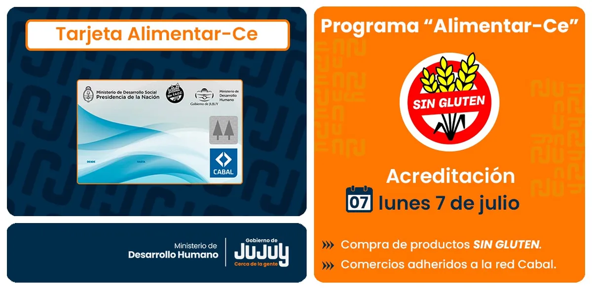 El Ministerio de Desarrollo Humano de Jujuy, mediante la Secretaría de Asistencia Directa, comunica que este lunes 7 de julio, se concretó la acreditación de la tarjeta Alimentar-Ce, destinada a las y los titulares del programa “Alimentar-Ce”, perteneciente al Plan Social Nutricional Provincial.