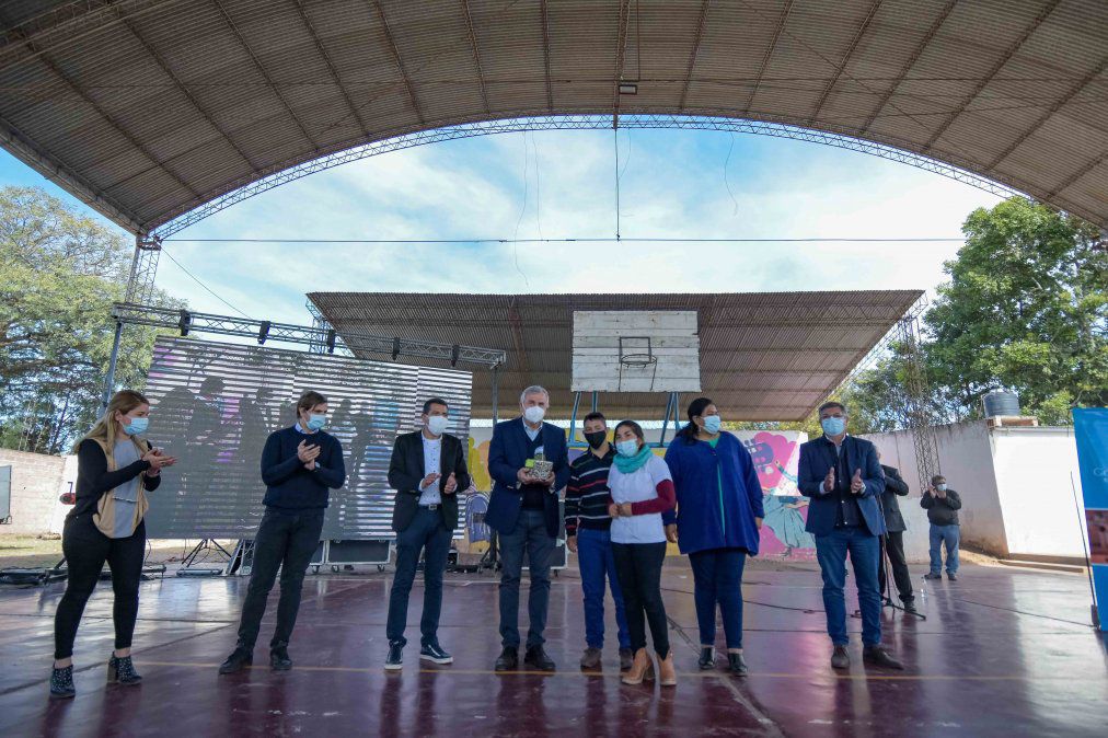 El gobernador Gerardo Morales encabezó el acto en el que se entregaron insumos y maquinarias a beneficiarios de Potenciar Trabajo y Potenciar Construcción de Palma Sola, Entre los beneficiados figuran proyectos de Saneamiento y Desinfección, Carpintería Responsable, Comedores Infantiles y Comunitarios y de Construcción de Núcleos húmedos. Además, el Club Joven de Palma Sola recibió juegos de mesa y elementos e indumentaria deportiva.