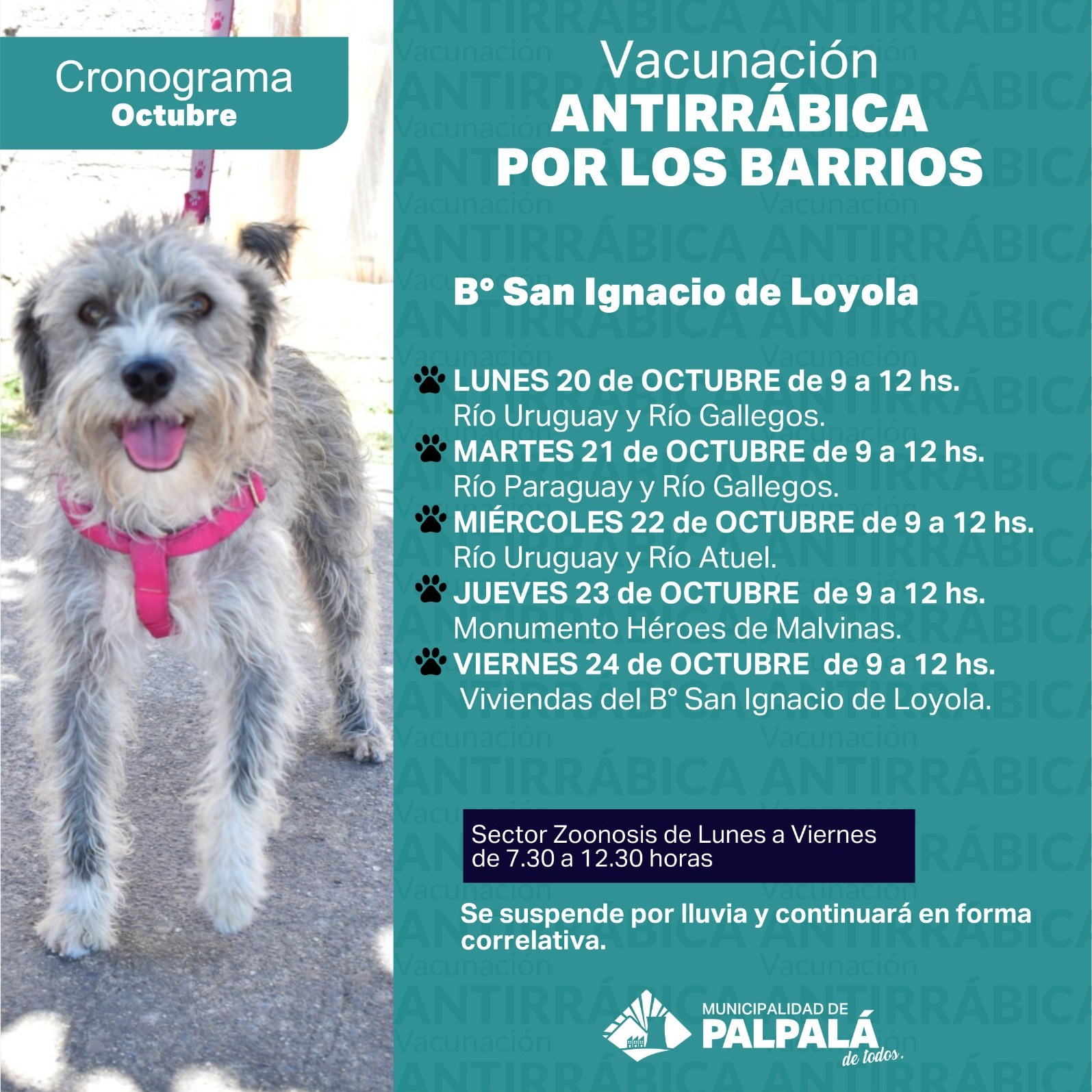 La Municipalidad de Palpalá comunica que el cronograma de vacunación para la próxima semana se desarrollara de 9 a 12 horas en EL barrio San Ignacio de Loyola: