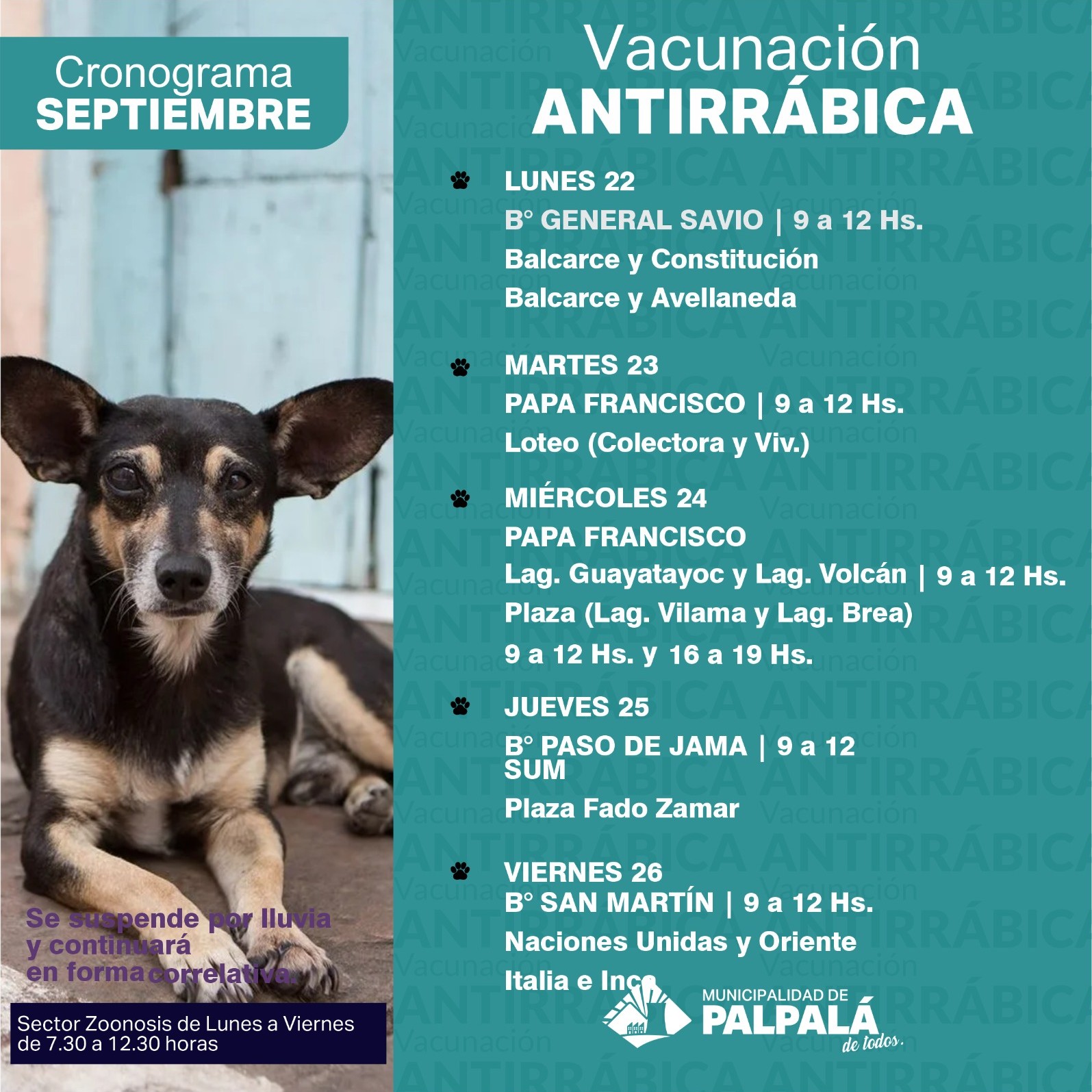 La Municipalidad de Palpalá comunica que esta semana culmina la campaña de vacunación antirrábica anual, tras haber recorrido todos los barrios de la ciudad.