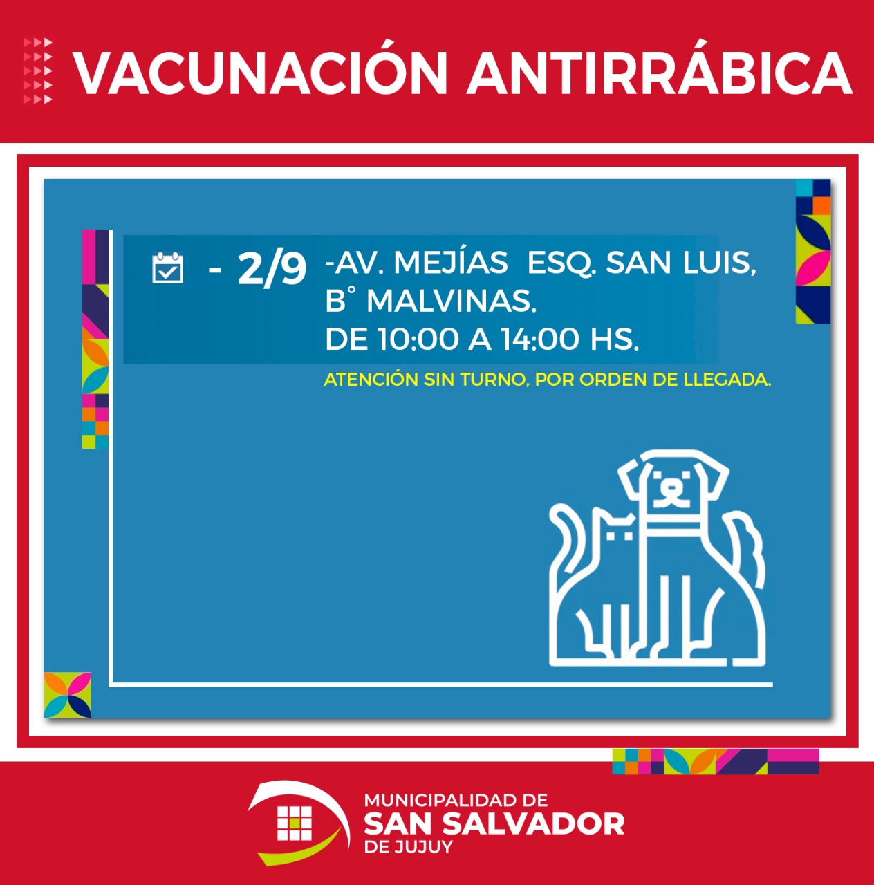 La dirección de Zoonosis, dependiente de la secretaría de Gobierno de la Municipalidad de San Salvador de Jujuy informa ubicación, fecha y hora de vacunatorios y castraciones para esta semana, del 30 al 3 de septiembre.