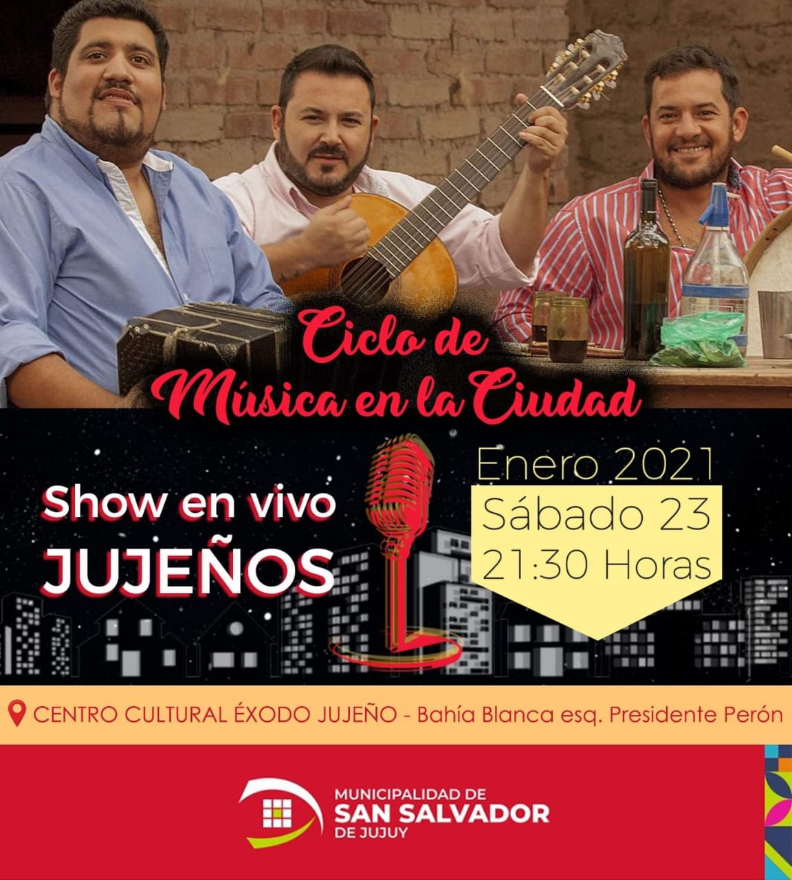 SAN SALVADOR DE JUJUYCICLO DE MUSICA EN LA CIUDAD enero 22, 2021 Facebook Twitter WhatsApp Facebook Twitter WhatsApp