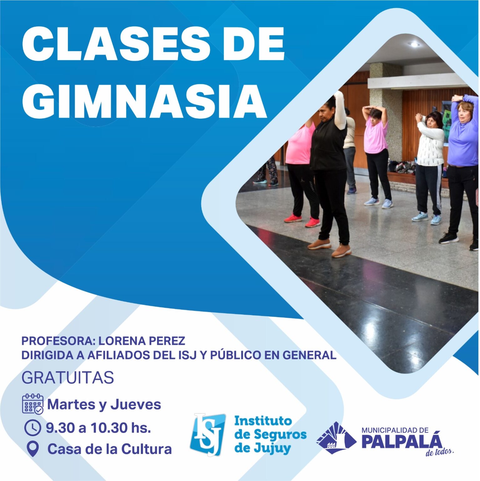 La Municipalidad de Palpalá invita a toda la comunidad, especialmente a los afiliados al ISJ, a participar de las clases gratuitas de gimnasia. Tienen lugar todos los martes y jueves, de 9:30 a 10:30 horas, en la Casa de la Cultura, ubicada en avenida Del Congreso esquina Río Chubut. A cargo de la profesora Lorena Pérez.
