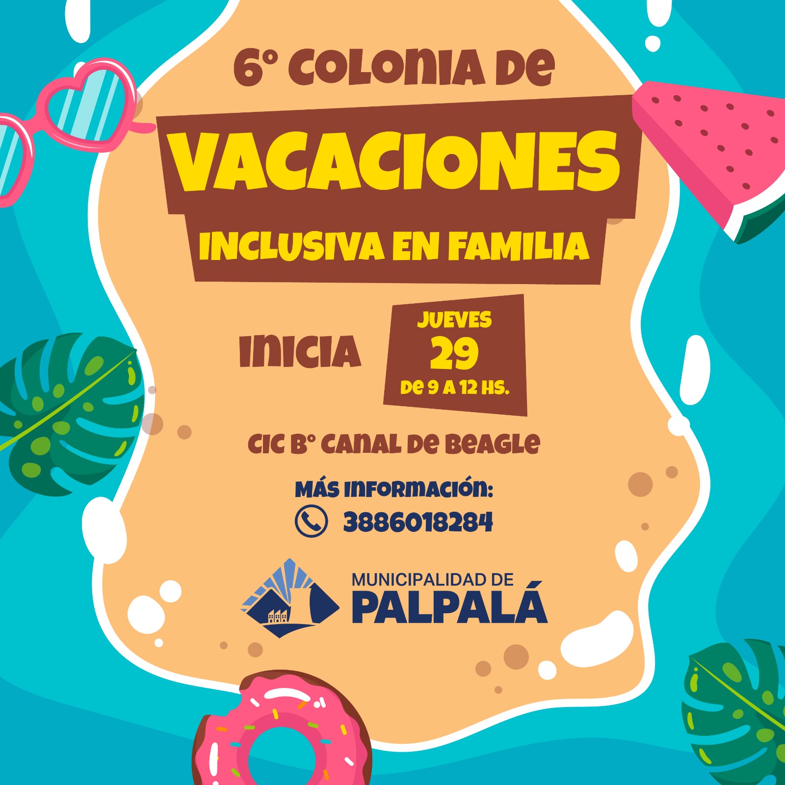 La Municipalidad de Palpalá informa que se encuentran abiertas las inscripciones para la Colonia Vacacional Inclusiva. Las mismas se realizan en el CIC N°2 Canal de Beagle, ubicado en calle Cabo Quispe esquina Chacho Peñaloza.