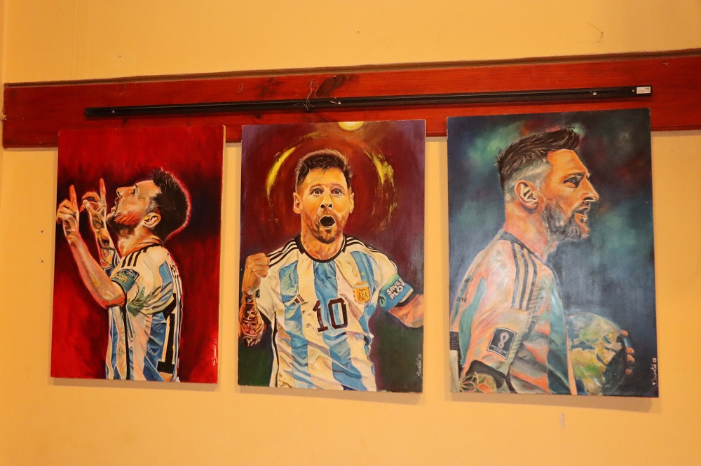 Mariela Apaza, vecina de San Salvador de Jujuy, se acercó hasta el lugar de la muestra, donde se expresó: “Me encanta Messi, por eso preguntaba si los cuadros estaban a la venta. Mi fanatismo me trajo hasta acá, vivo en el Centro de San Salvador. Es excelente el trabajo de la Municipalidad de Palpalá en ofrecernos este tipo de evento, que por cierto no abundan, estoy muy contenta”.