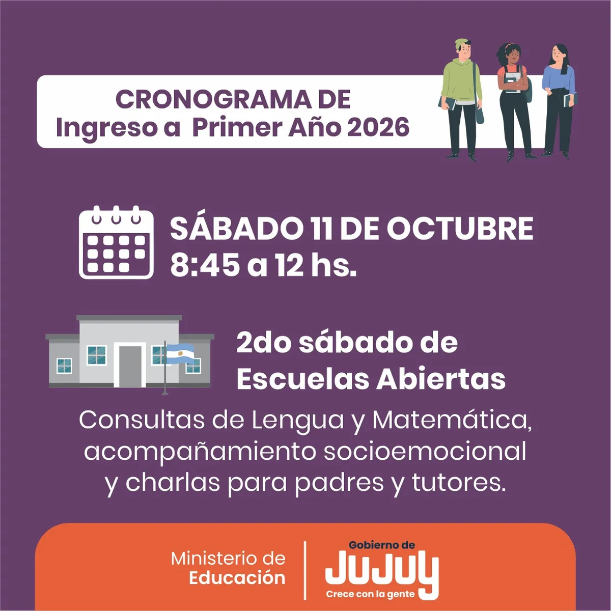 El Colegio Secundario N° 60 de San Pedro se incorpora para recibir a estudiantes de 7° grado y a sus familias los sábados 11 y 18 de octubre.