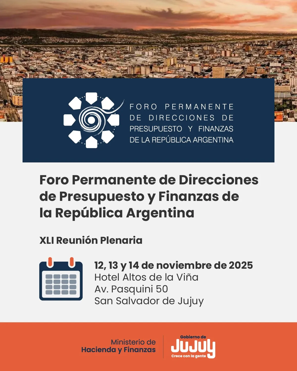 Entre el 12 y el 14 del corriente mes, en instalaciones del hotel Altos de La Viña, se celebrará la 41º Reunión Plenaria del Foro Permanente de Direcciones de Presupuesto y Finanzas de la República Argentina.