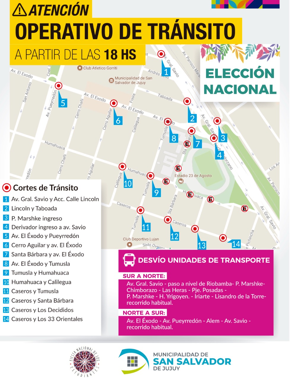 La Dirección de Tránsito y Transporte dependiente de la Secretaría de Servicios Públicos, dispuso modificar el recorrido de las líneas del transporte urbano de pasajeros, que habitualmente circulan por el estadio “23 de Agosto” del barrio Luján, para el viernes a partir de las 18 horas con motivo de la elección reina nacional de Los Estudiantes.