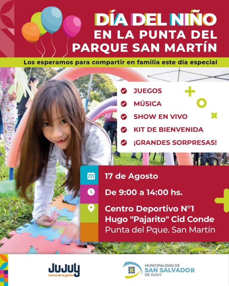 La Municipalidad de San Salvador de Jujuy informa que, debido a la reciente modificación de la fecha oficial del Día de las Infancias a nivel nacional, se reprogramaron los festejos previstos inicialmente para el domingo 10. El gran evento, organizado de manera conjunta con el Gobierno de la Provincia, se realizará el próximo domingo 17 de agosto de 10 a 14 horas, en la Punta del Parque San Martín.