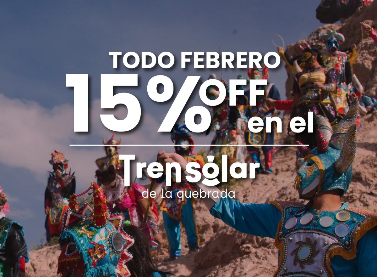 El Tren Solar de la Quebrada, el primer tren turístico solar de Latinoamérica, lanza la promoción “Subite al Carnaval”, una propuesta especial para los turistas durante el mes de febrero con un 15% de descuento, incluyendo los días de Carnaval.