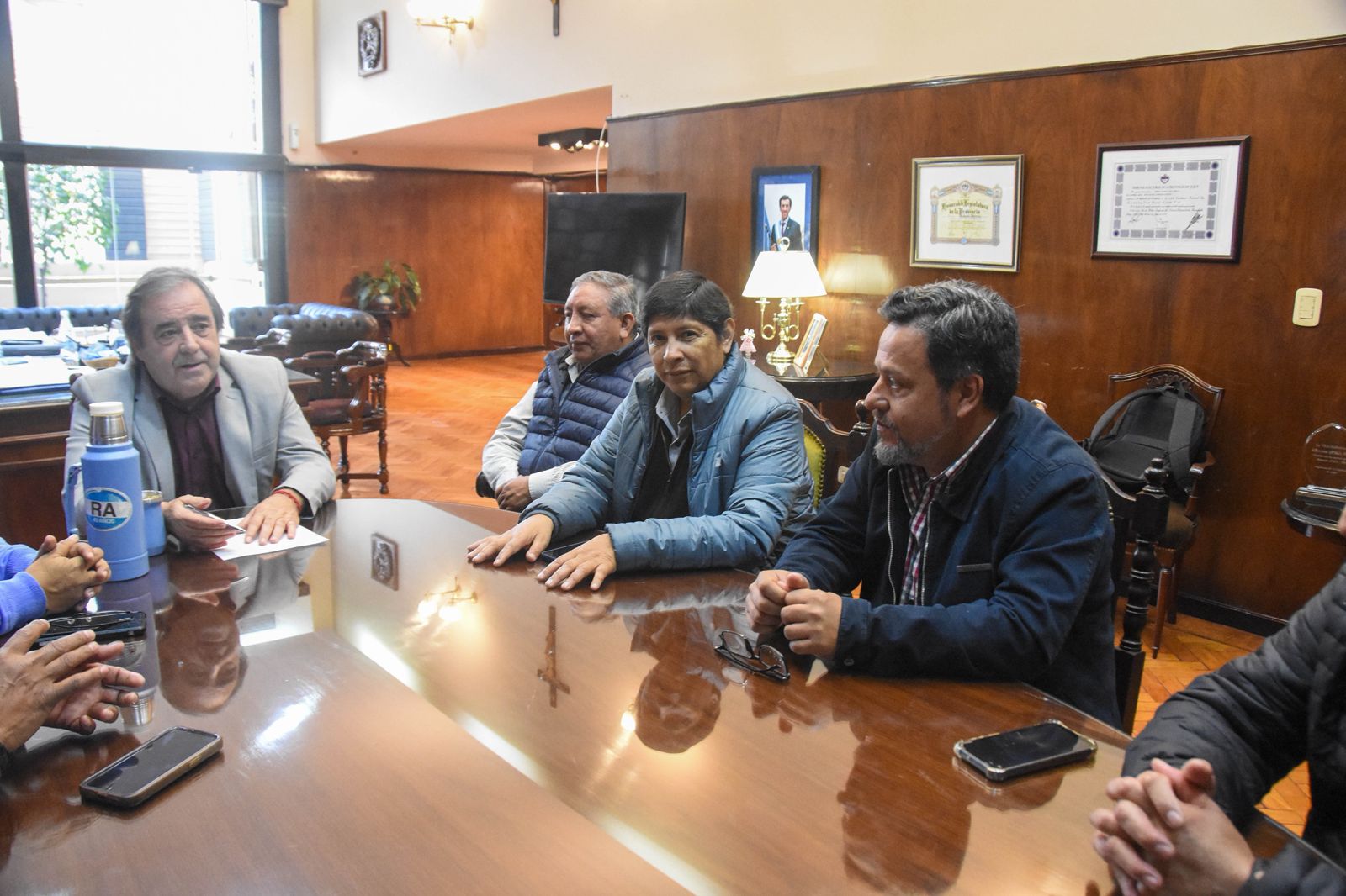 En el despacho de Presidencia de la Legislatura, el vicegobernador de Jujuy Alberto Bernis, acompañado por el diputado Fabián Tejerina, vicepresidente 1º de la Legislatura y el diputado Santiago Jubert presidente del bloque oficialista, mantuvieron una reunión con los referentes de la CGT regional Jujuy: Freddy Berdeja, Julio Ramírez, Ramón Neyra, Francisco Montes, Aníbal Arenas, Luis Cabana, Ariel Vargas y Miguel Mamaní.