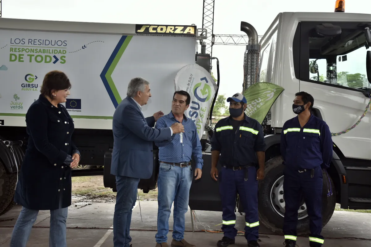 El gobernador Gerardo Morales entregó un camión compactador y contenedores para la gestión de los residuos en El Piquete en el marco del proyecto GIRSU.