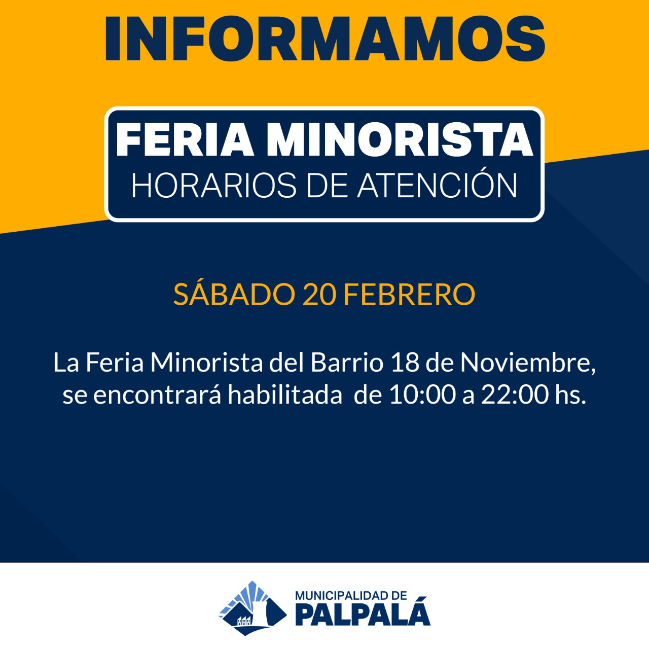 ▪Informamos los horarios de atención al público de la Feria Minorista del barrio 18 de Noviembre, para el día de mañana.