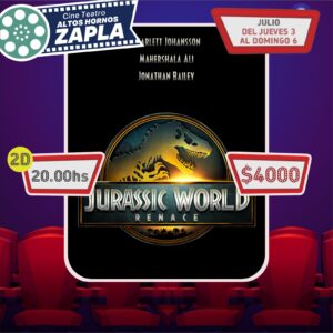 20 horas, “JURASSIC WORLD: RENACE”, en 2D, costo de la entrada 4000 pesos.