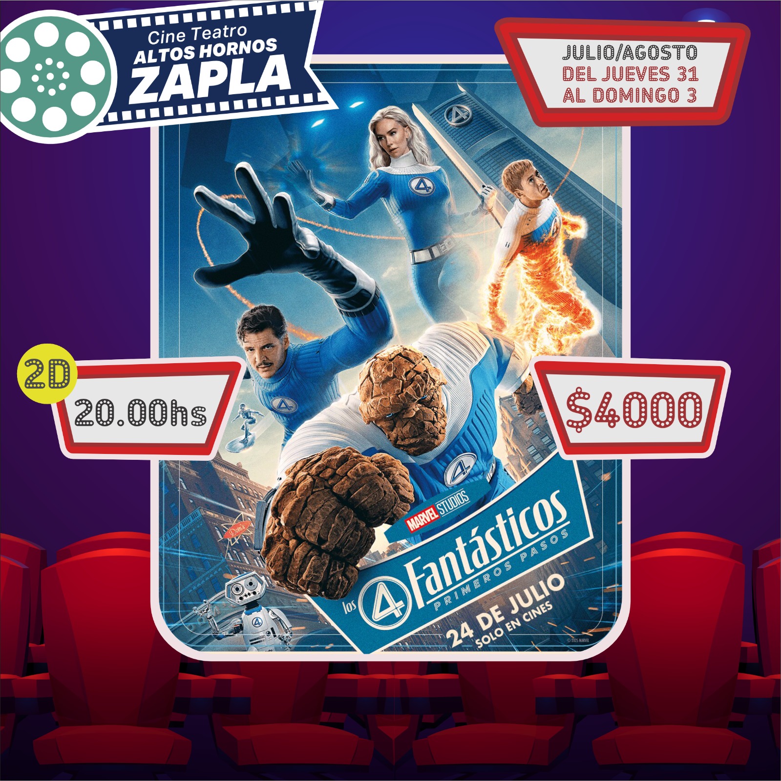 20 horas, «LOS 4 FANTÁSTICOS: PRIMEROS PASOS», en 2D, costo de la entrada 4000 pesos.