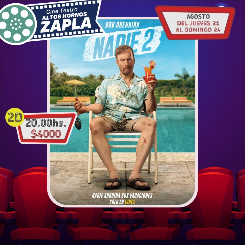 «NADIE 2» 20 horas, en 2D entrada 4000 pesos