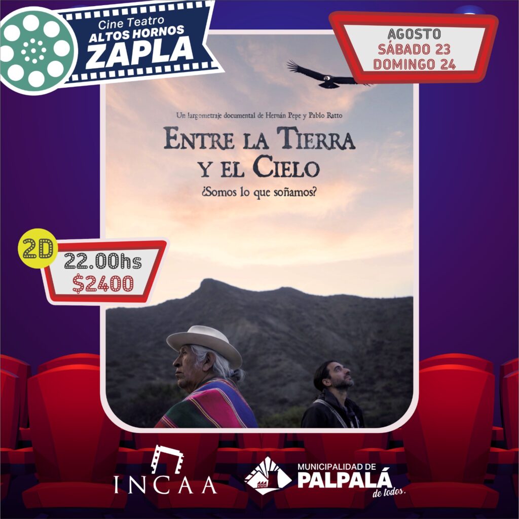 «ENTRE LA TIERRA Y EL CIELO» 22 horas, en 2D entrada 2.400 pesos (espacio INCAA)