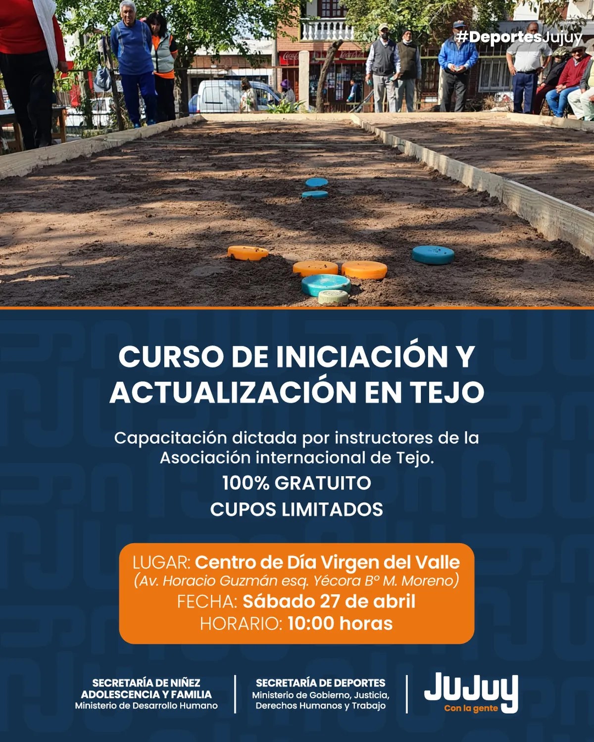 Desde el Ministerio de Gobierno, Justicia, Derechos Humanos y Trabajo, junto al Ministerio de Desarrollo Humano, se llevará a cabo el “Curso de Iniciación y actualización en Tejo”, el sábado 27 de abril desde las 10 horas.