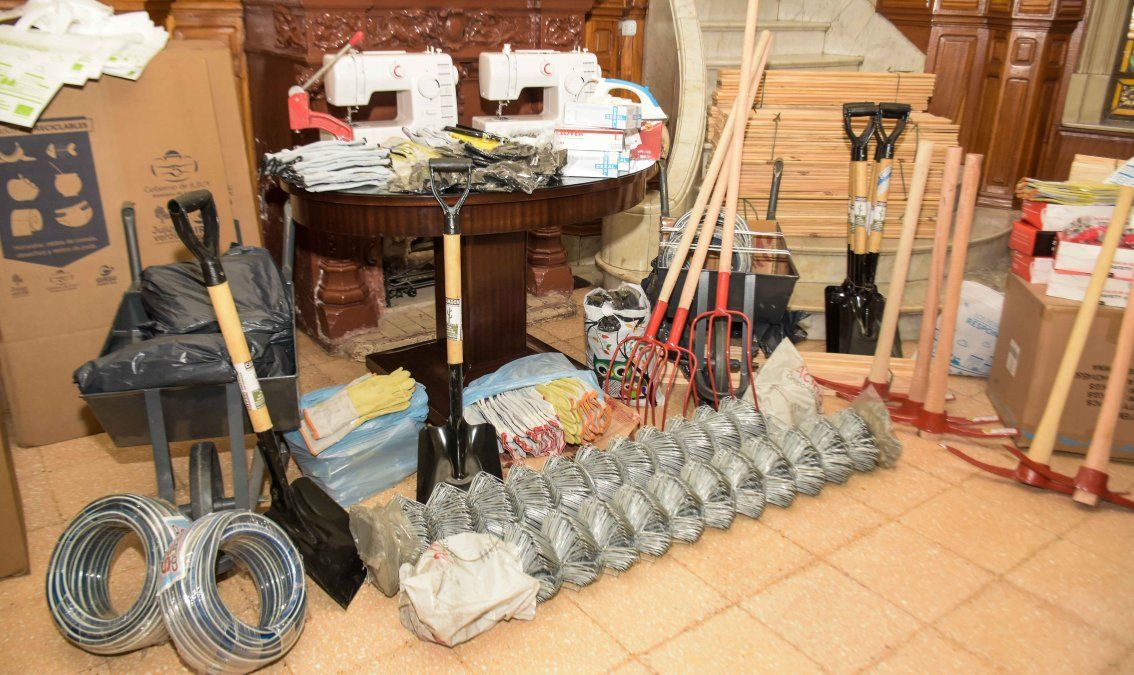 En esta oportunidad se entregaron, entre otros recursos, carretillas, palas, picos, listones de madera de pino, machimbre, caños PVC, rollos de alambres, Elementos de Protección Personal (EPP), guantes, lentes, barbijos. Insumos destinados a garantizar la continuidad de las acciones que llevan adelante los jóvenes de Cuidadores en el territorio.