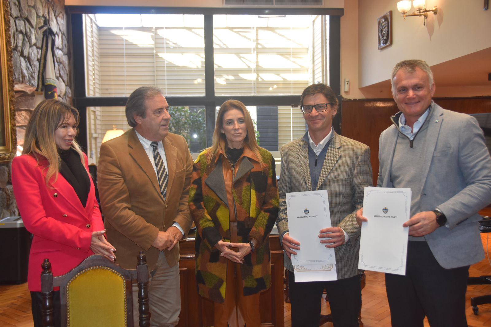 El vicegobernador Alberto Bernis – acompañado por las legisladoras Valeria Gómez y Daniela Velez – entregó a Federico Gatti, administrador general de Ledesma S.A.A.I., la resolución que declara de Interés Legislativo el “Plan de impacto social de Ledesma para la mejora de la calidad de la educación y el estímulo del empleo y la empleabilidad”. También recibió el documento el Lic. Vicente Amadeo, jefe del departamento Relaciones con la Comunidad de Ledesma.