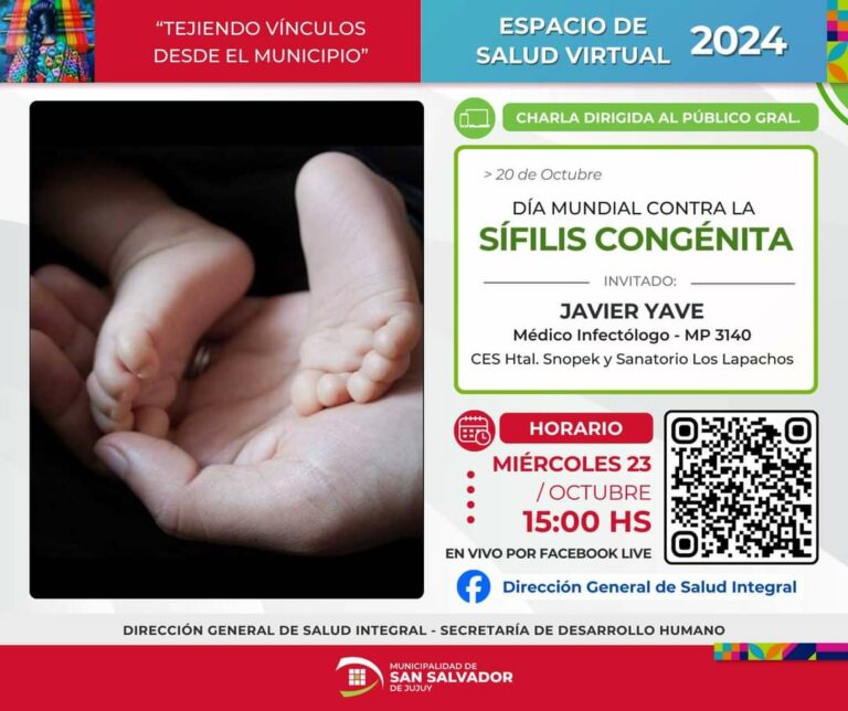 El programa “Tejiendo Vínculos” que el municipio capitalino propone cada miércoles fomentando espacios de encuentro y aprendizaje con la comunidad, brindará el miércoles 23 de octubre una charla virtual en el marco del “Dia Mundial contra la sífilis congénita”, a partir de las 15 horas a través de Facebook live.