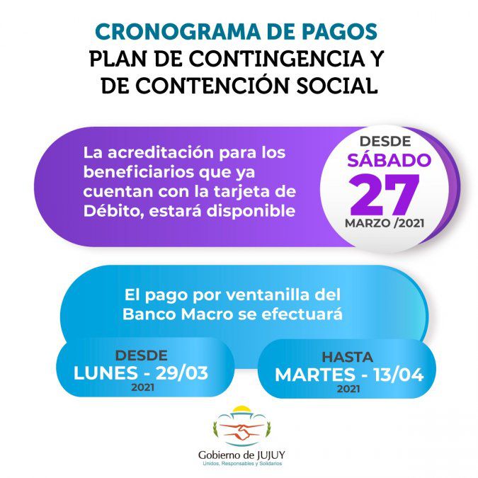 La Secretaría de la Unidad Coordinadora y Ejecutora de Planes y Programas Interministeriales, anunció el pago del Plan de Contingencia y Contención Social, a través de Banco Macro.