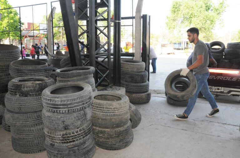 Díaz informó sobre el destino final de los desechos recuperados: “Los neumáticos son transformados en gas por la empresa Holcim, lo que implica que al reemplazar el gas natural por gas reciclado se disminuye la huella de carbono; mientras que los plásticos los canjeamos en una empresa recicladora por postes de material plástico reciclado que utilizaremos en la ampliación del Parque Botánico Municipal.