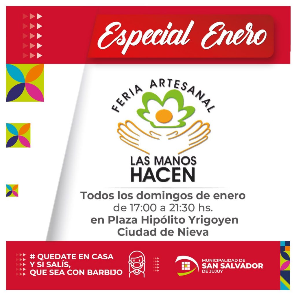 Por último, el domingo 24, volvemos a tener en agenda la feria artesanal “Las Manos Hacen” en la Plaza Hipólito Yrigoyen en el barrio Ciudad de Nieva, de 17 hs. a 21 hs.