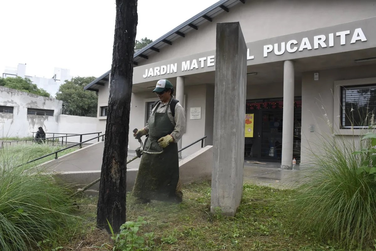 En la jornada de este jueves se intensificaron las labores de desmalezado en varios establecimientos educativos ubicados en barrios y localidades donde hay mayor cantidad de casos de dengue.