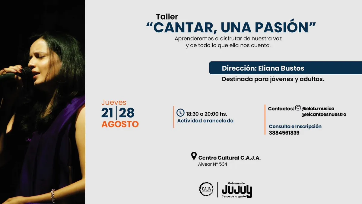 “Cantar, una pasión” forma parte de la programación cultural impulsada por el Gobierno de Jujuy, y busca fomentar el arte como práctica vital y accesible. La propuesta se complementa con espacios de escucha, ejercicios prácticos y dinámicas de grupo.