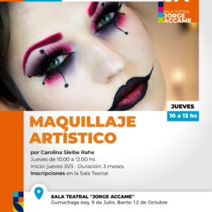 Otra de las opciones es Maquillaje Artístico, dictado por Carolina Sleibe Rahe, quien guiará a los asistentes los jueves de 10 a 12 horas, a partir del jueves 31 de marzo, con una duración de tres meses. Las inscripciones se pueden efectuar en la sala teatral.