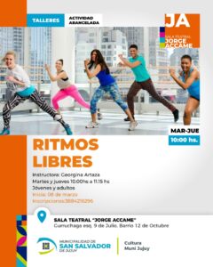 Desde la Secretaría de Cultura y Turismo, la administración de la Sala “Teatral Jorge Accame”, informó los talleres 2022 de capacitación y recreación que se proponen en diferentes días y horarios, desde Baile Fitness, Maquillaje Artístico y Ritmos Libres. Los mismos son con cupos limitados, por lo que los interesados pueden comunicarse al número 388 4216296 para concretar la inscripción a las actividades.