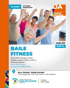 Entre las actividades mencionadas, el taller de Baile Fitness se realiza los días martes y jueves de 11:30 a 12:30 horas, a cargo de la instructora Georgina Artaza, destinado a jóvenes y adultos.