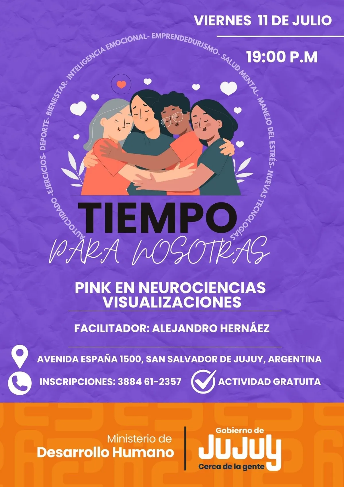 En el marco del programa “Tiempo para Nosotras”, el Ministerio de Desarrollo Humano de Jujuy —a través de la Secretaría de Desarrollo Integral y la Coordinación de Calidad de Vida— invita a participar de una jornada especial de bienestar emocional y reconexión interna, destinada a mujeres de la comunidad.