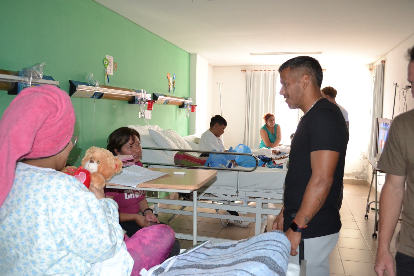 Los jugadores Guillermo Cosaro, Nicolás Dematei, Milton Álvarez, Francisco Molina, Sebastián Sánchez, Hugo Soria y Cristian Menéndez, el técnico Matías Módolo y la dirigente del área Social María Isabel Álvarez Ulrich, se acercaron a niños y niñas internados, compartiendo risas y momentos de esperanza.